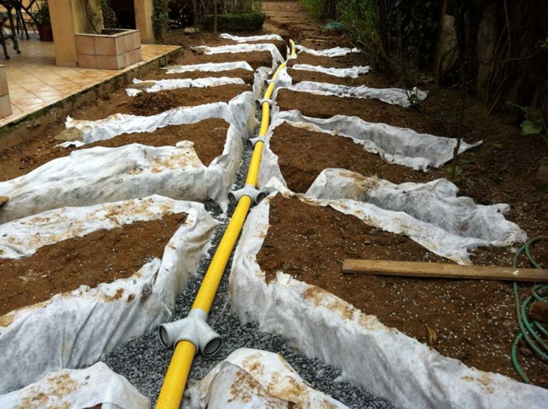 После подготовки траншей проводят укладку дренажных труб, соблюдая заданный уклон (обычно 2-5%) для эффективного отвода воды. Трубы засыпаются слоем фильтрующего материала и покрываются грунтом, который способствует сохранению формы системы и предотвращает засорение дренажа. В итоге осуществляется проверка всей системы на герметичность и исправность перед дальнейшей засыпкой и благоустройством участка.